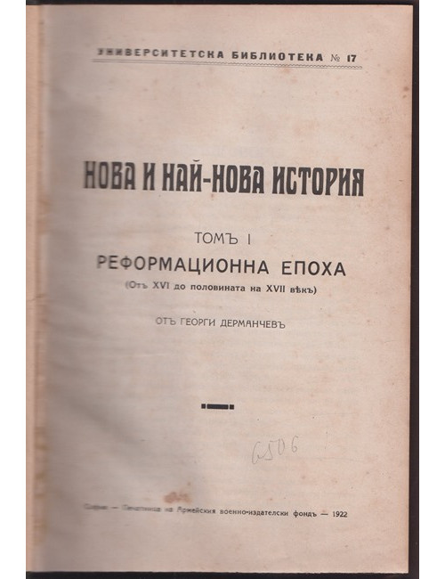 Нова и най-нова история. Томъ 1: Реформационна епоха