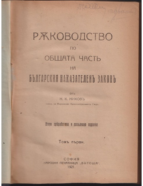 Ръководство по общата часть на българския наказателенъ законъ. Томъ 1