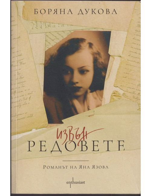 "Извън редовете" е резултат от тригодишно проучване на мистерията около живота и творчеството на Яна Язова. Гласът на "поетката" разказва от първо лице за личния й път, белязан от професор Александър Балабанов. Талант, любов и скандали са в началото на тяхната история, последвана от творческата й изолация след 9 септември 1944 г. Романите й, отшелническият й живот и загадъчната й смърт пораждат разследване, в което главен герой е може би нейният собствен син. Това е топла, красива и човешка книга. Тя ни прави по-мъдри, тъжни, щастливо възвишени. Вглеждайки се в миналото, Боряна Дукова извайва бъдеще. Тя достига до същността на таланта, който е сплав от тъга, порив и безсмъртие! Здравка Евтимова