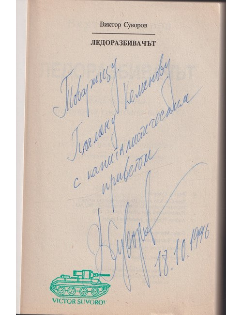 - Състояние: Много добро (Леки забележки по кориците. С автограф и печат на Виктор Суворов.)